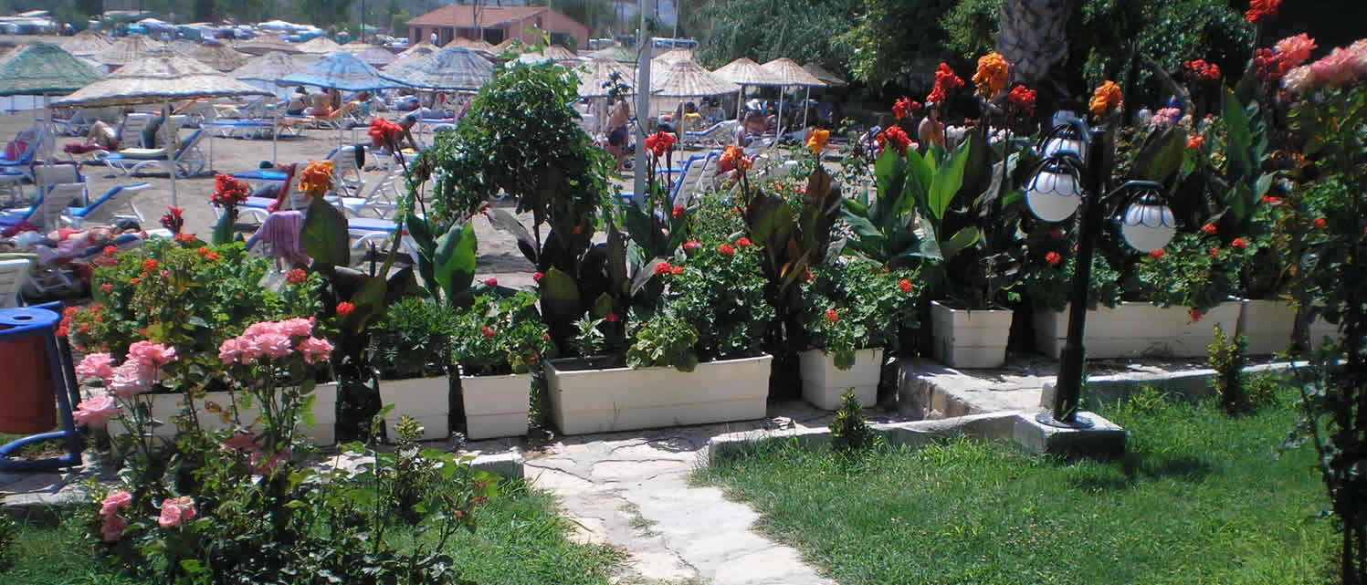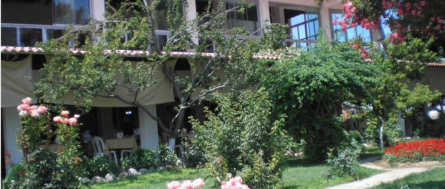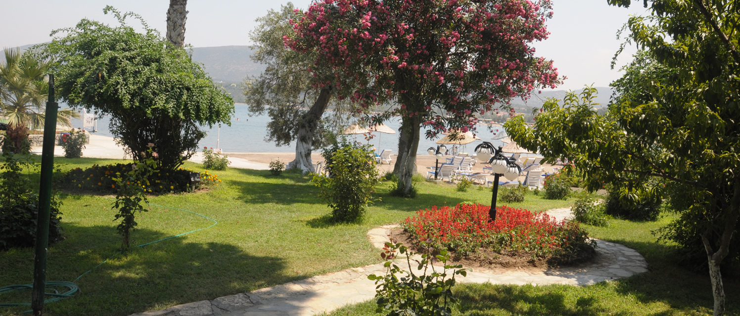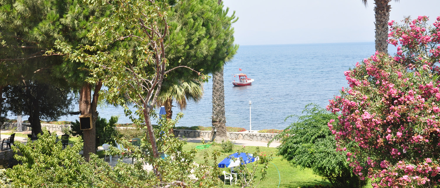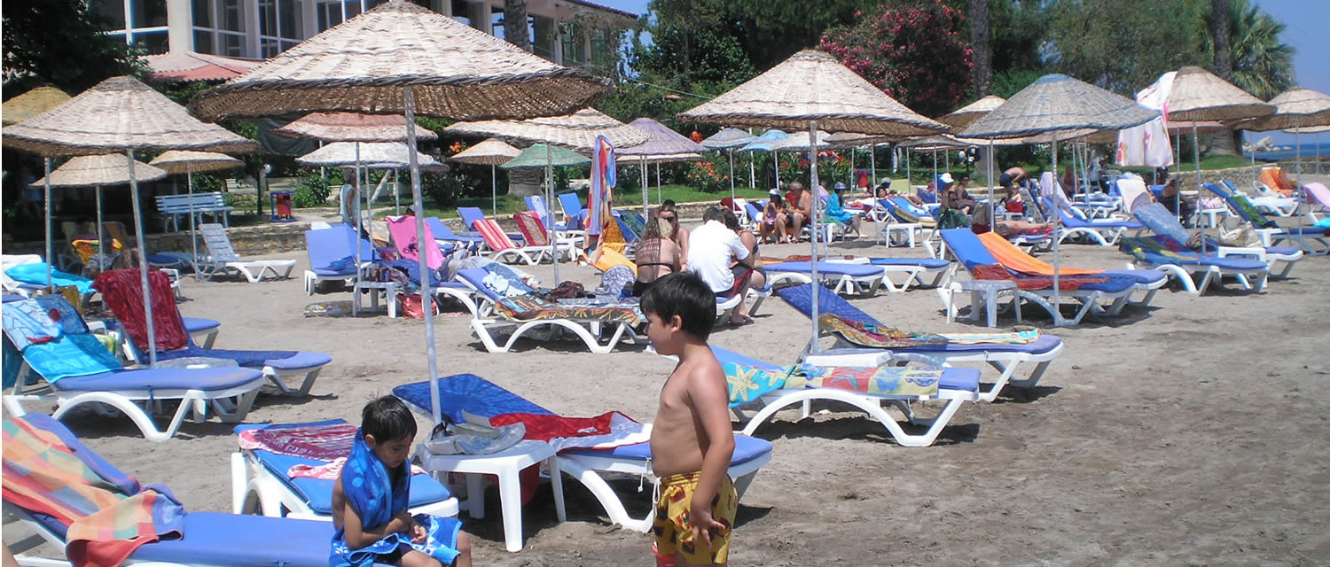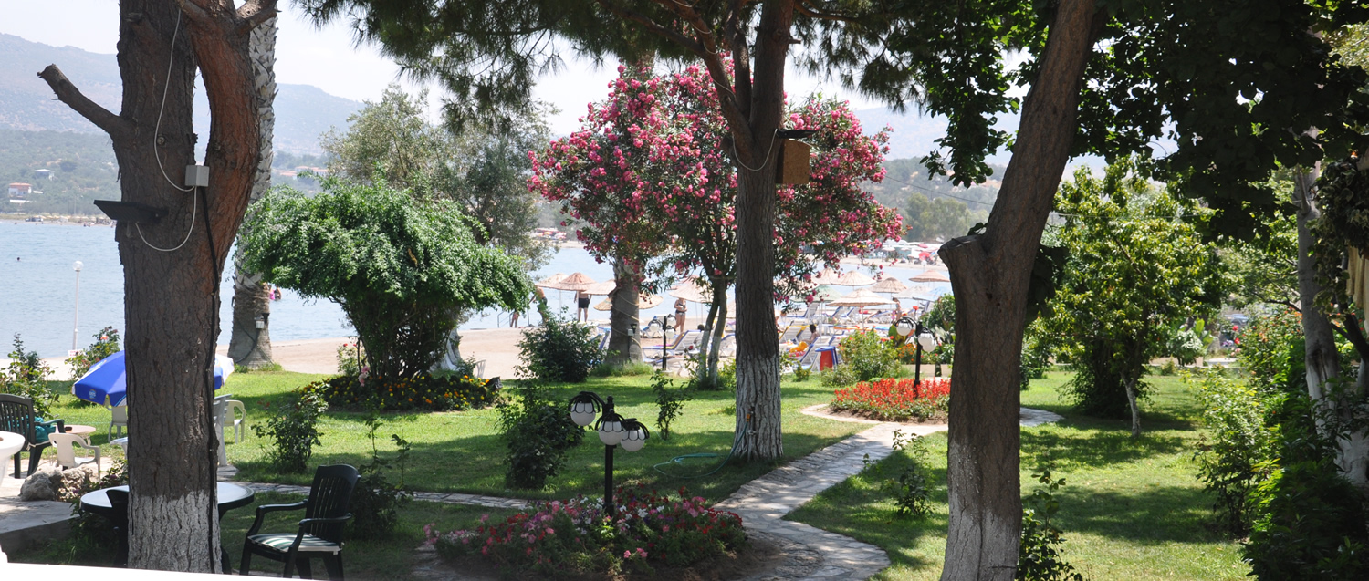 Otelimiz şehir yaşamının karmaşıklığından ve yorgunluğundan uzak, Ege'nin güzel renkleri, zeytin ve palmiye ağaçarı, rengarenk çiçekleri, bol güneş, tertemiz kumu ...