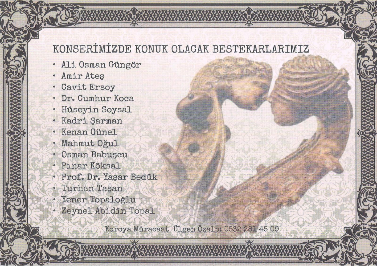 3.KONSERÝNÝ: TÜRK KIZILAYI yararýna “ YAÞAYAN BESTEKARLAR “ adýyla Þef AYÞE TAÞ Yönetiminde 31.Mayýs.2013 Tarihinde Ankara Üniversitesi Týp Fakültesi Morfoloji Binasý Abdülkadir Noyan Salonunda verdi.
