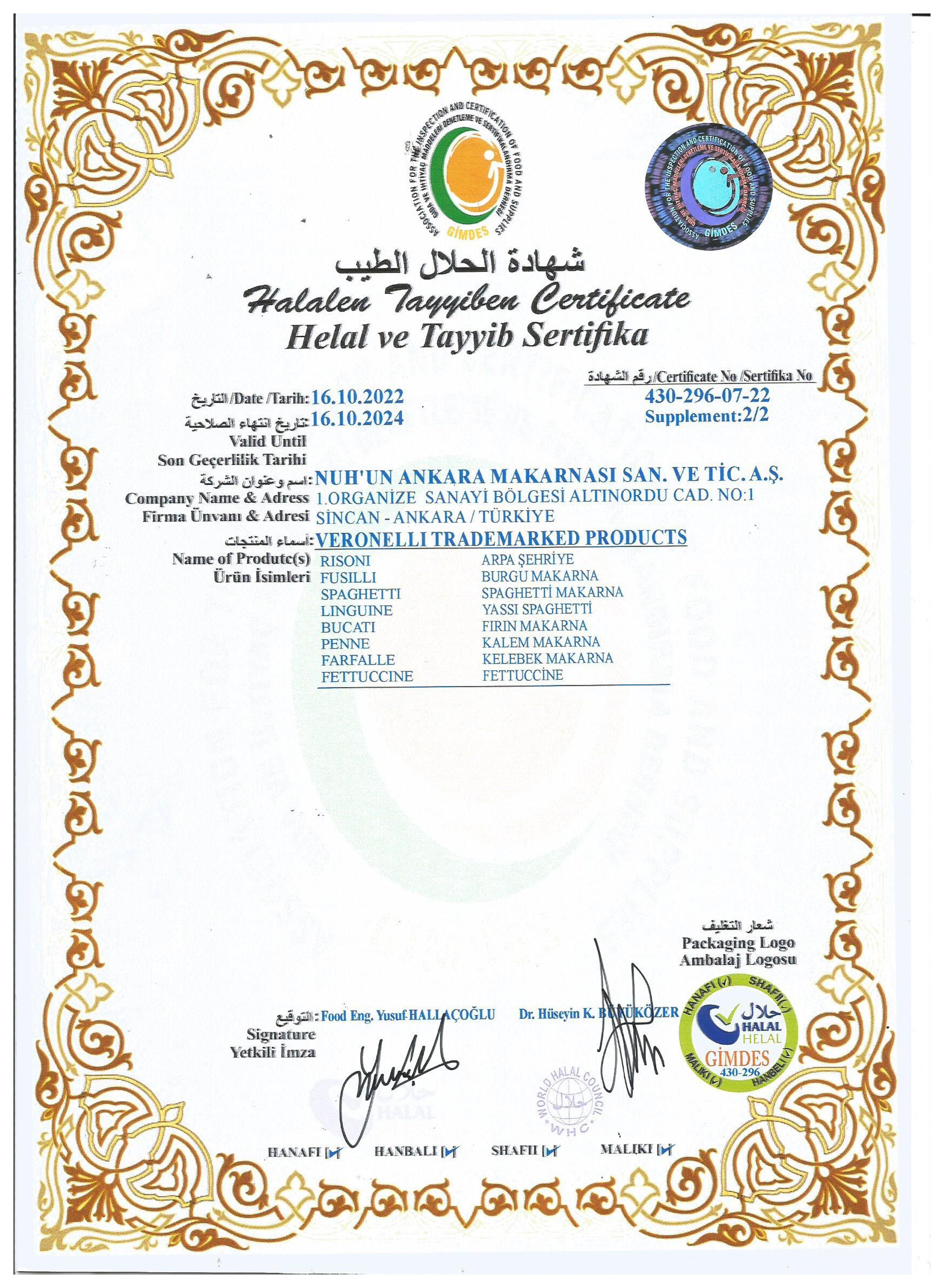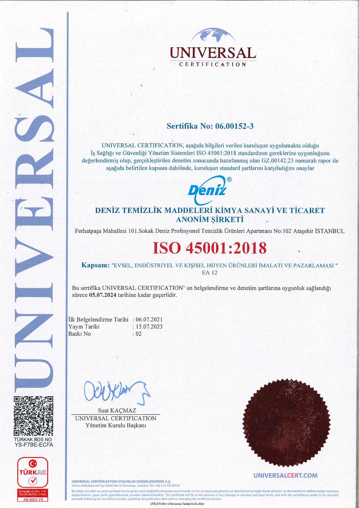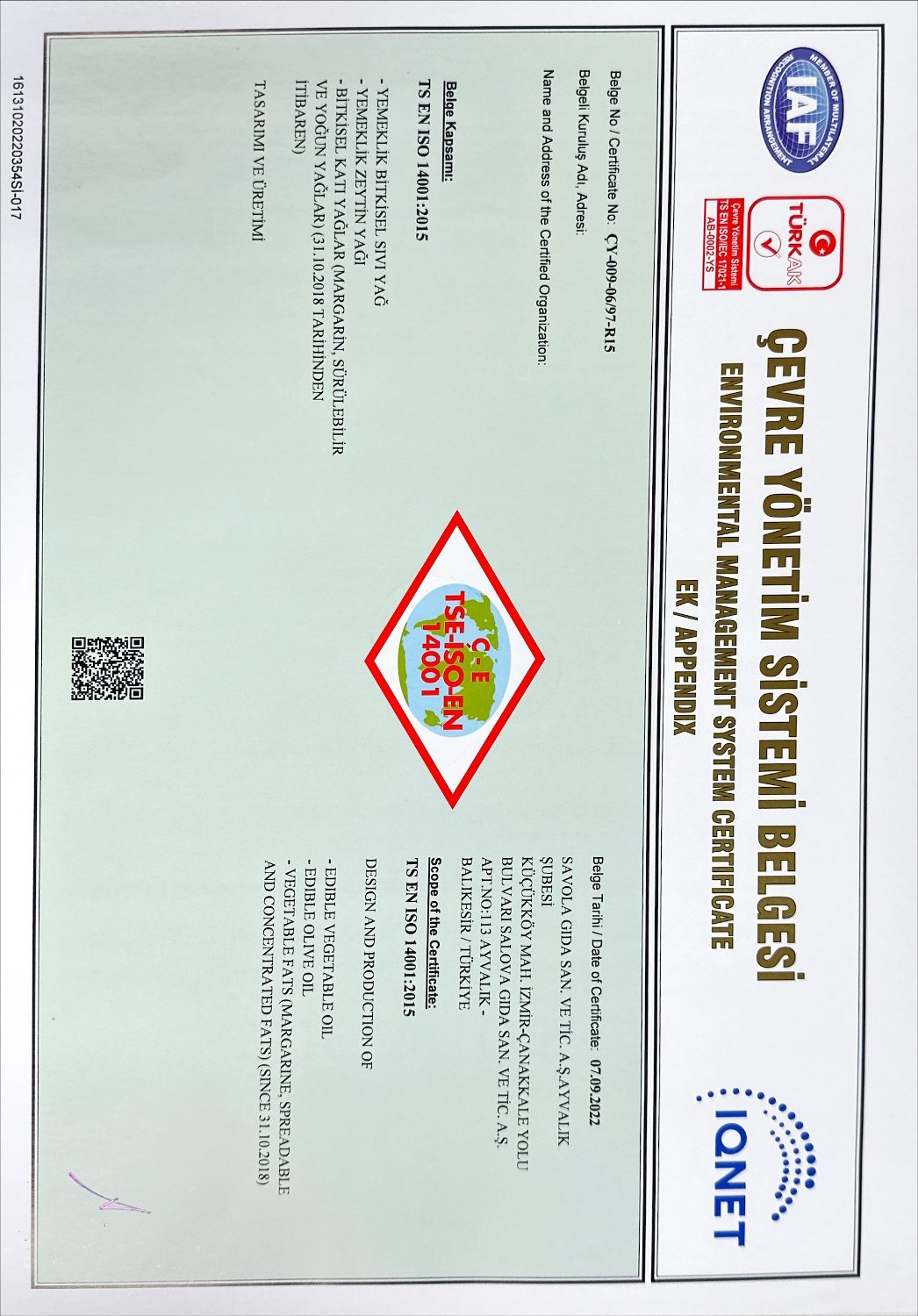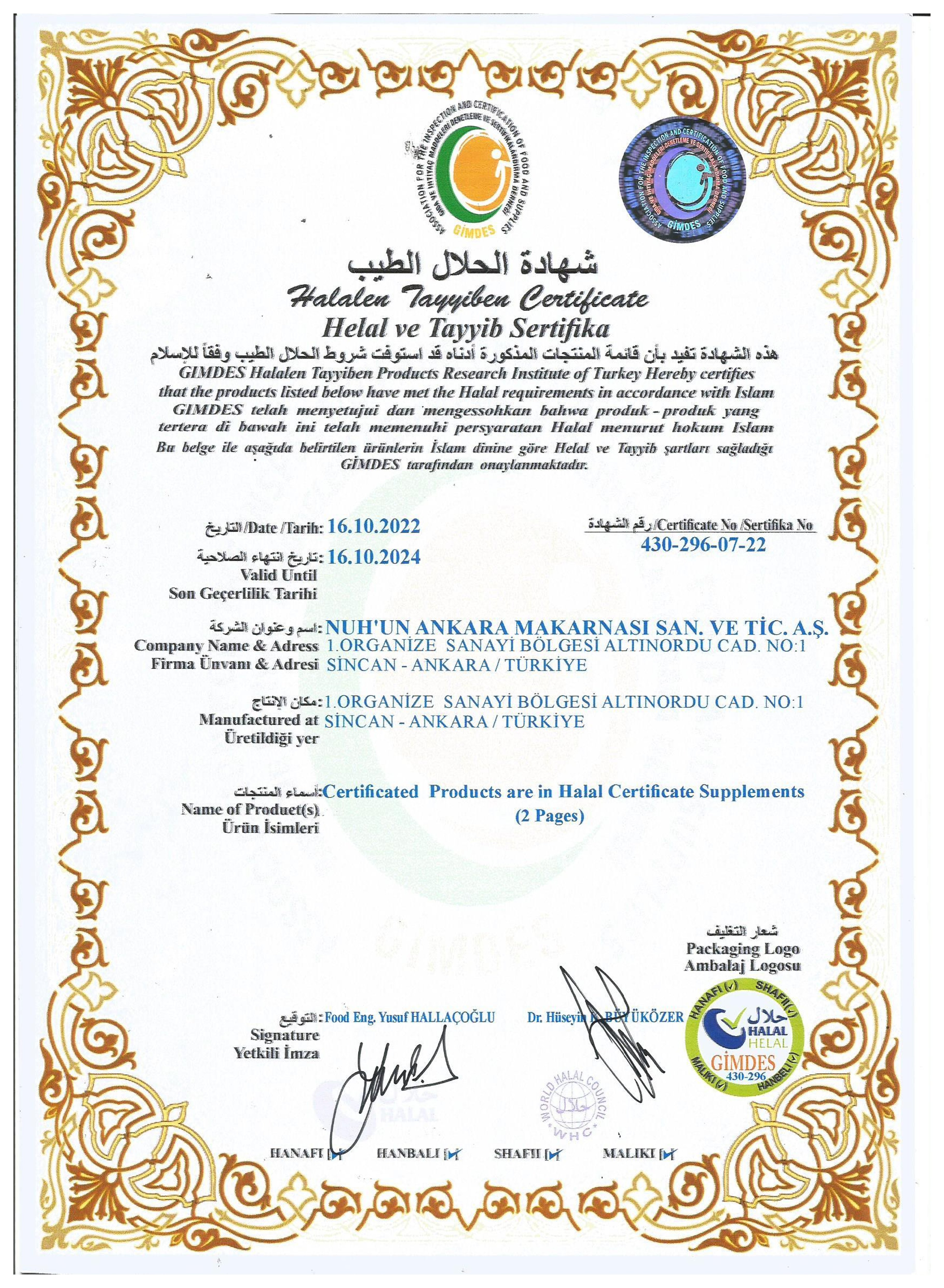Tedarikçi Firma Sertifikaları