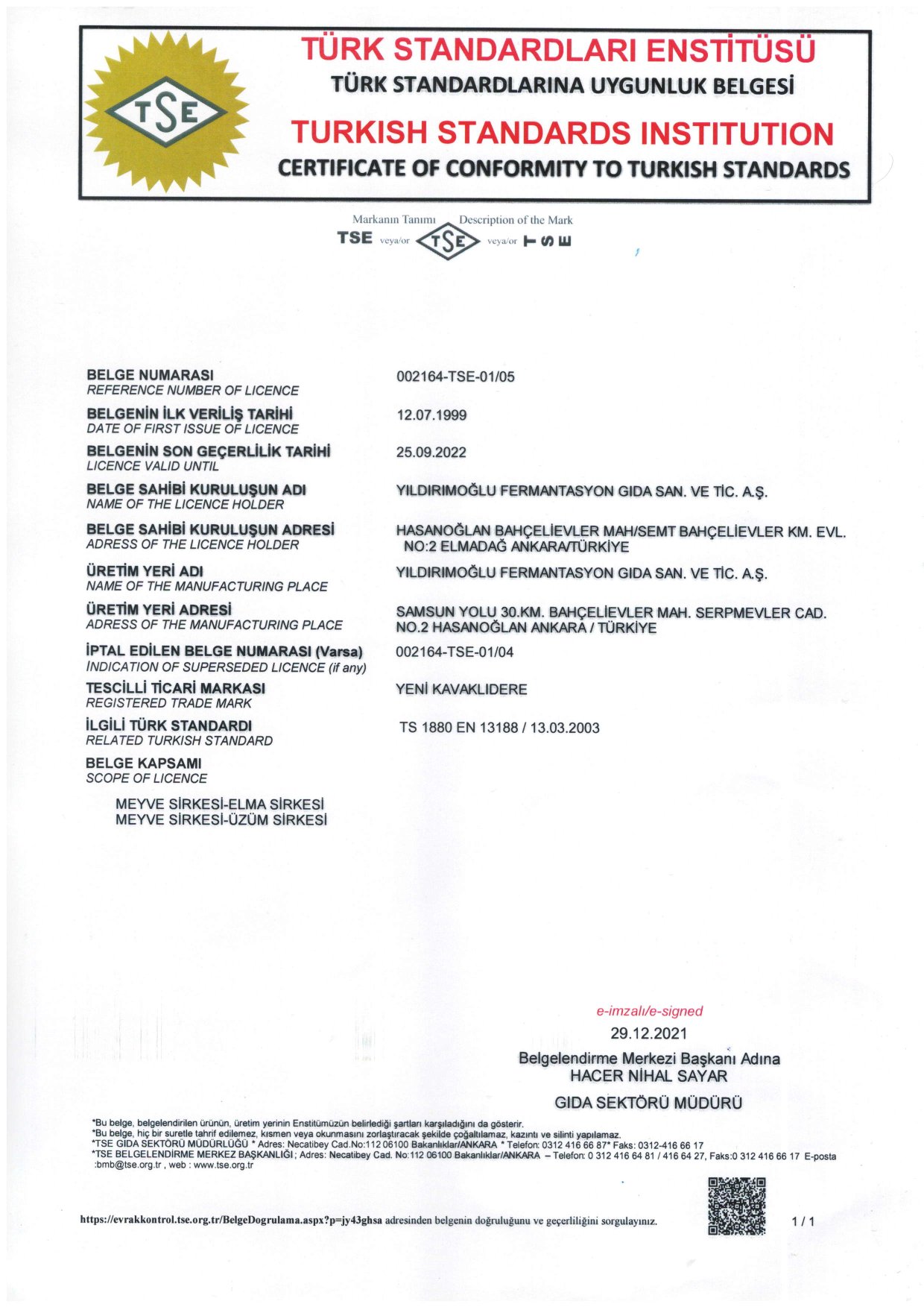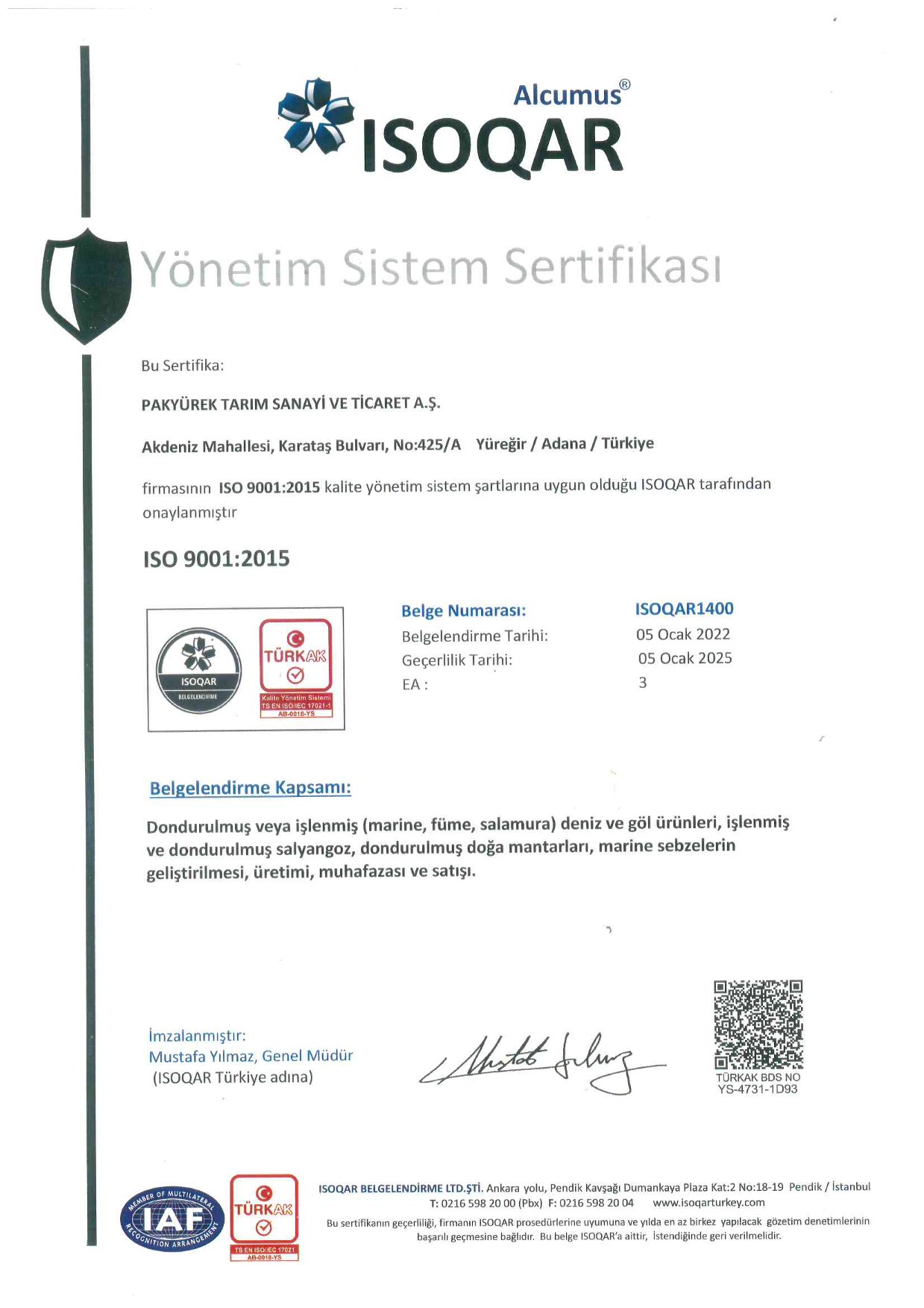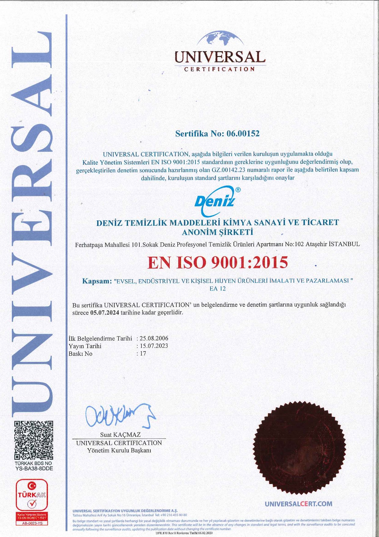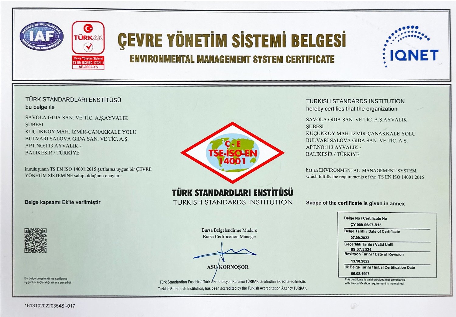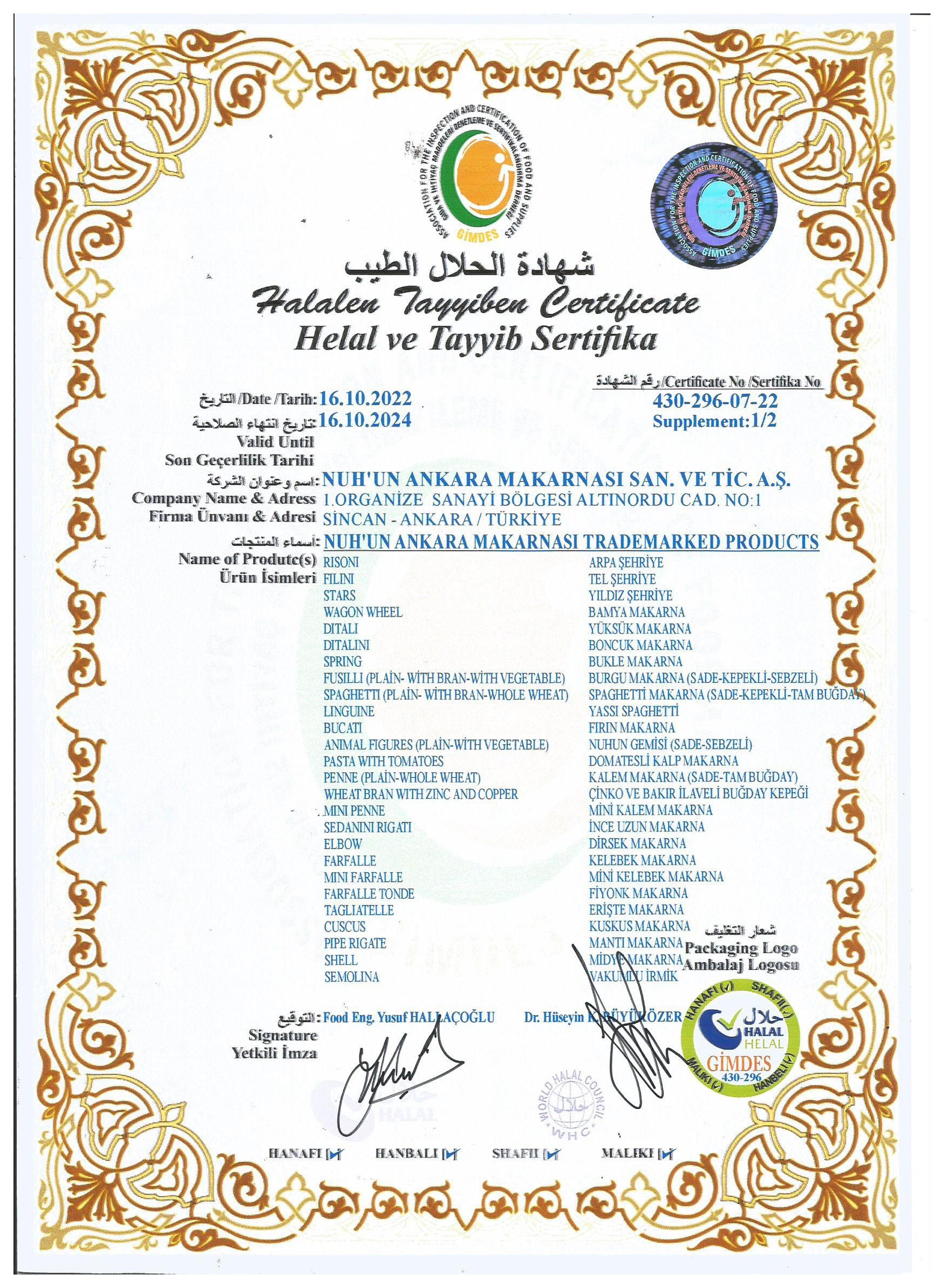 Tedarikçi Firma Sertifikaları