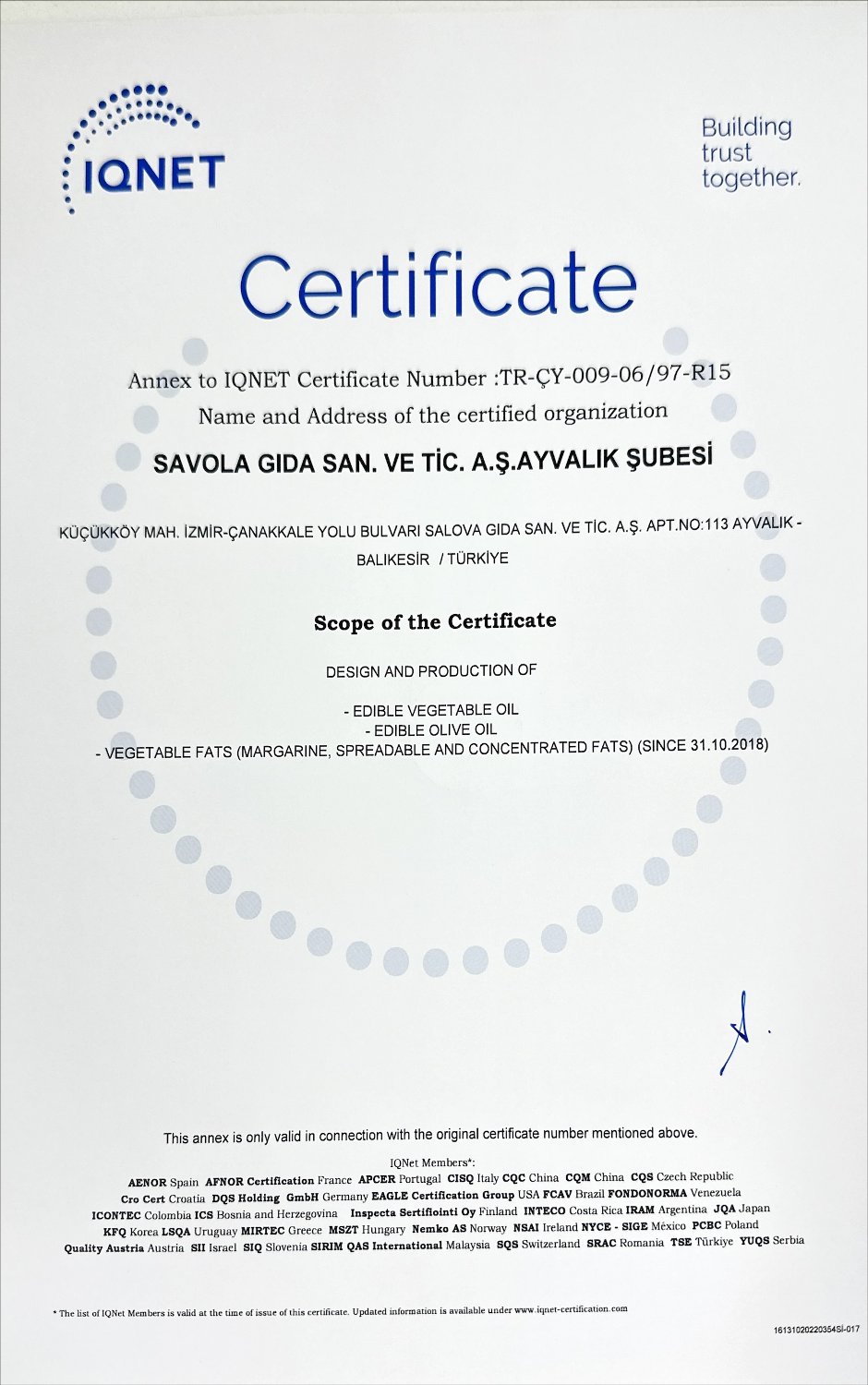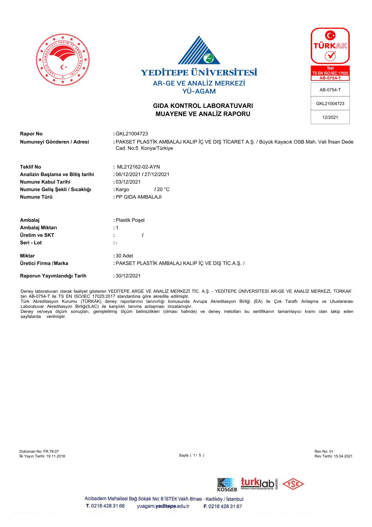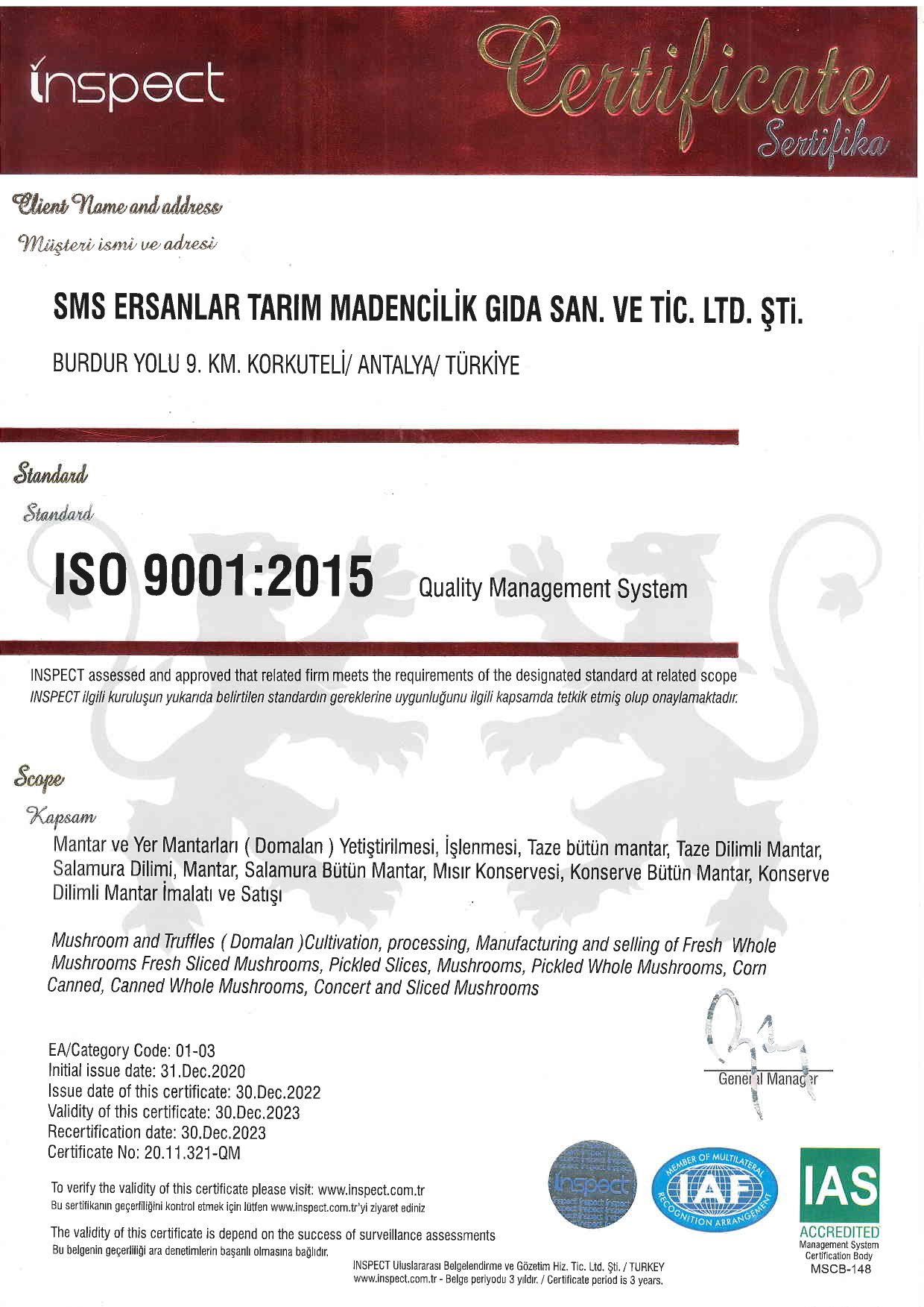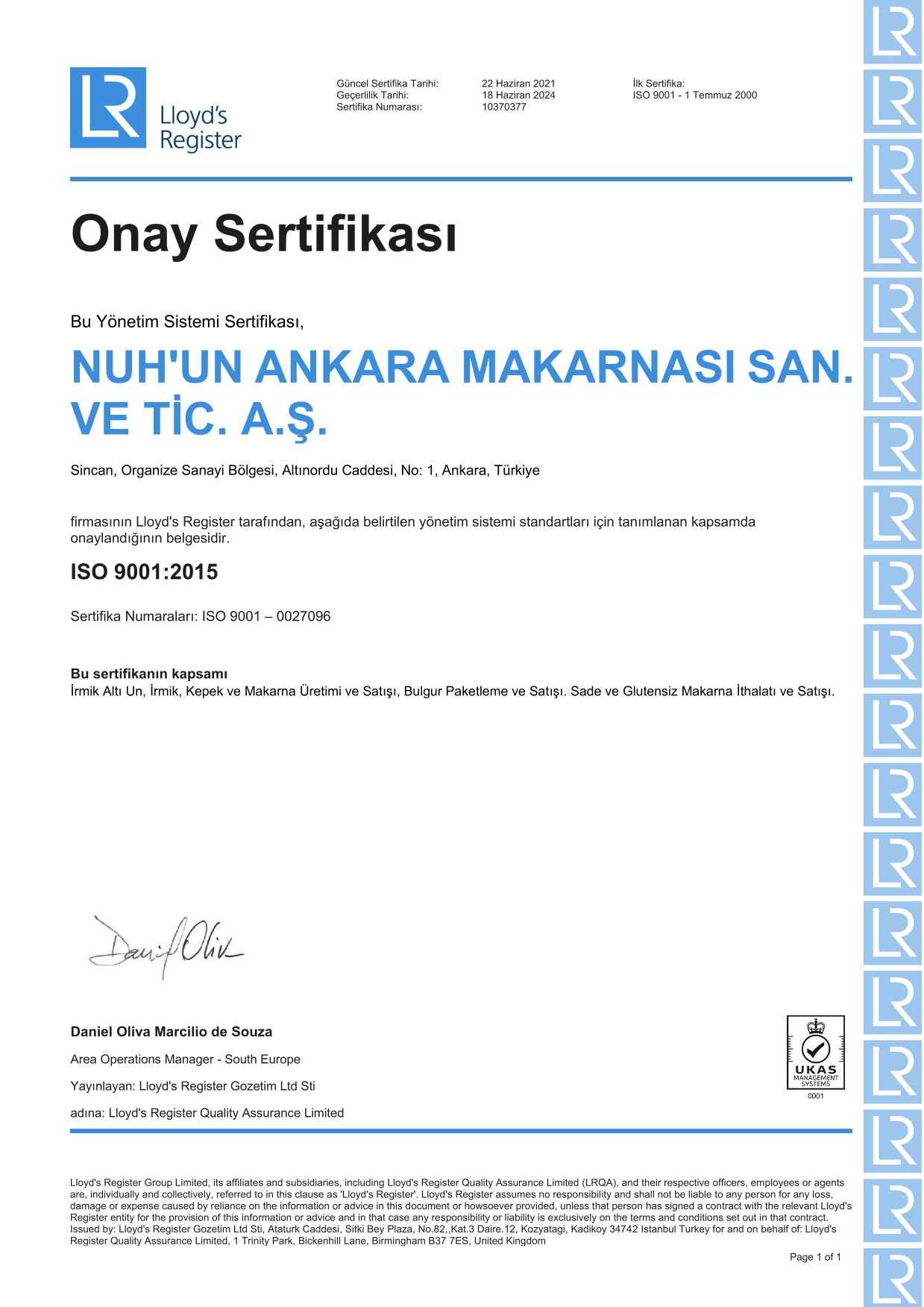 Tedarikçi Firma Sertifikaları