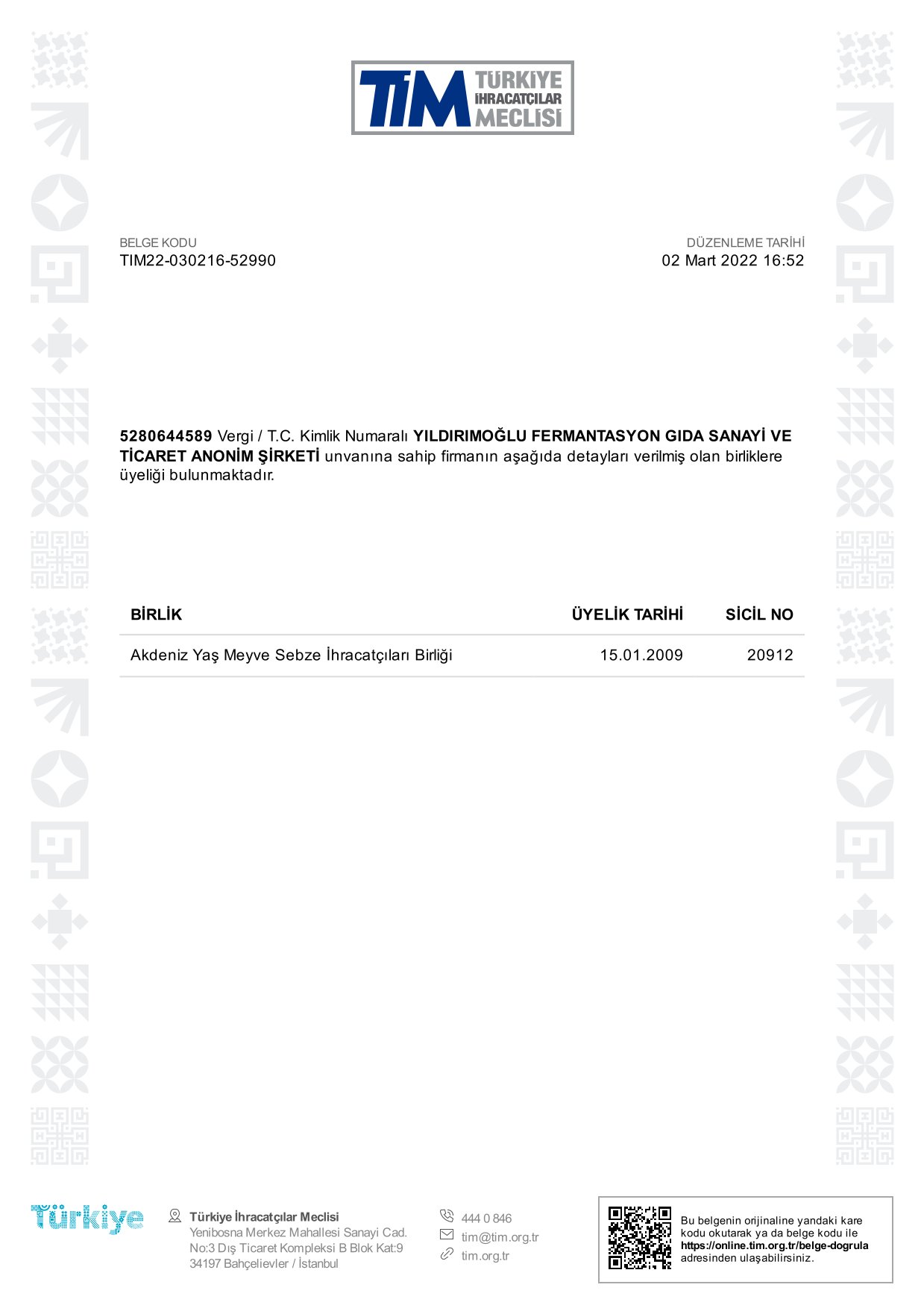 Sertifika ve Belgeler